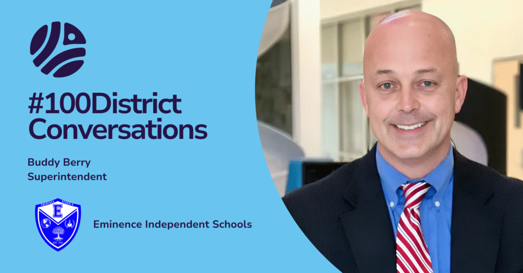 #56 Buddy Berry This was our first interview with a Kentucky leader for the #100DistrictConversations project, and it was fantastic! Buddy Berry, Superintendent of Eminence Independent Schools is an innovative education leader with a strong north star for personalized learning. His investment in early adopters feels incredibly relevant for today’s AI implementation conversations. Thank you…